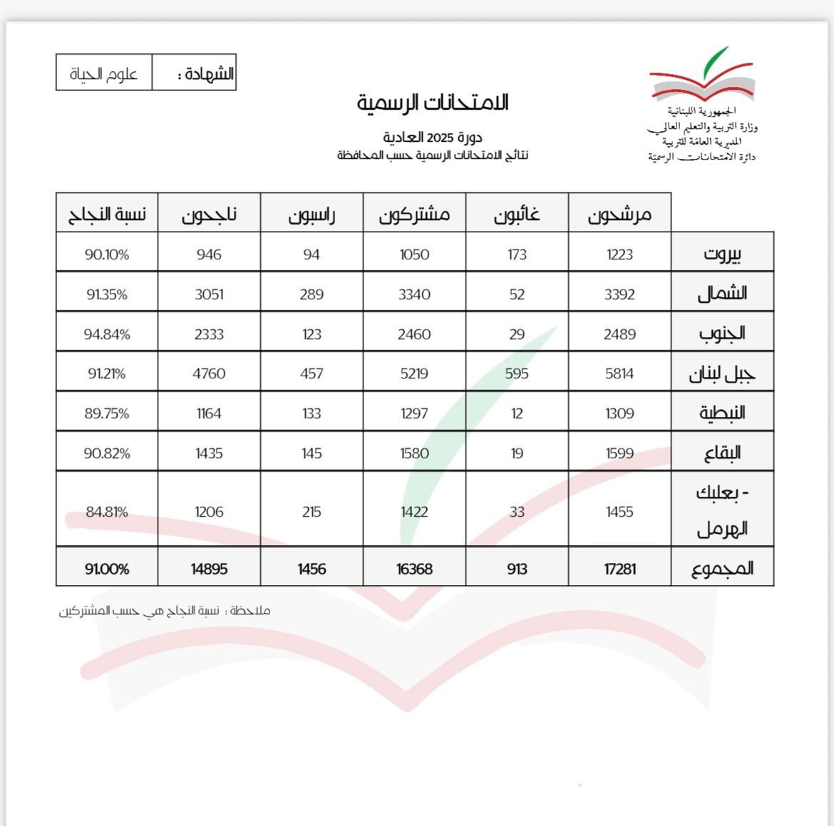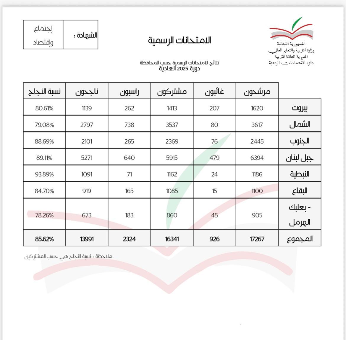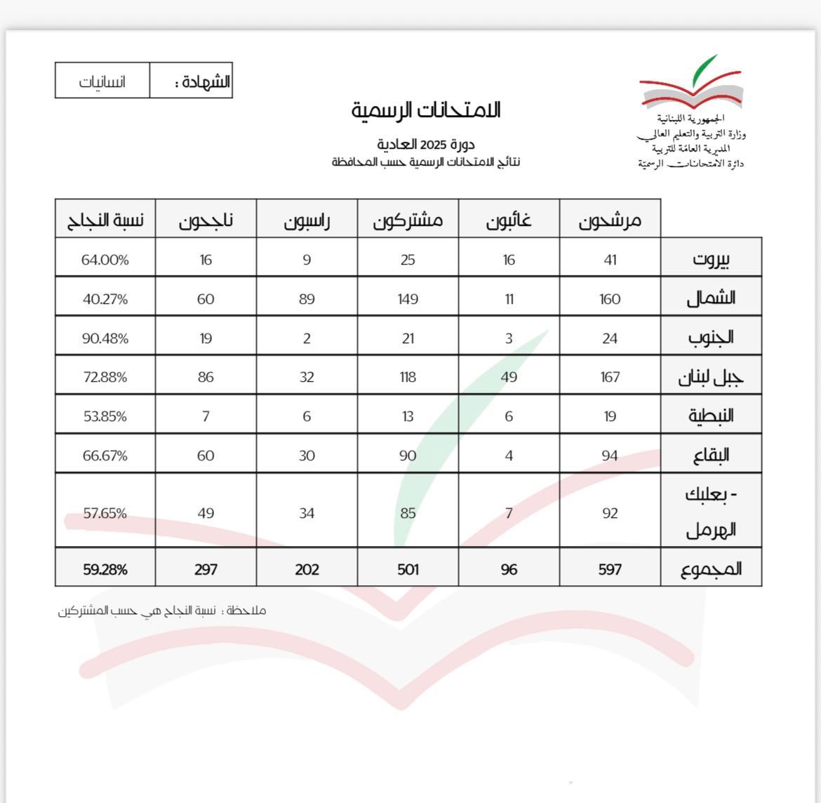 ونشرت وزارة التربية نسب النجاح في كل محافظة.