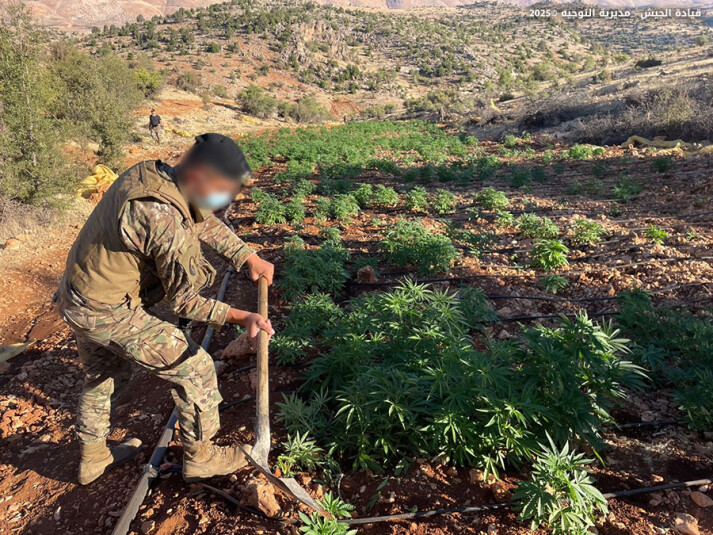 "ضمن إطار مكافحة الاتجار بالمخدرات، عملت وحدة من الجيش تؤازرها دورية من مديرية المخابرات على إتلاف 7 دونمات مزروعة بالحشيشة في بلدة الزرازير – بعلبك.