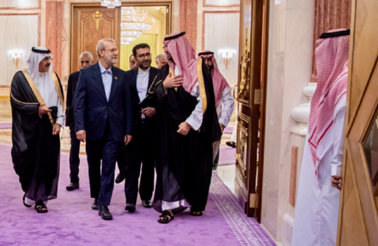 قال أمين المجلس الأعلى للأمن القومي الإيراني علي لاريجاني بعد لقاء ولي عهد السعودية محمد بن سلمان إنه تم بحث التعاون الدفاعي بين البلدين، وتقرر أن تتم هذه الأعمال على شكل مجموعات.