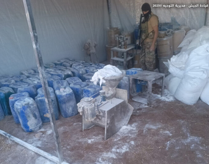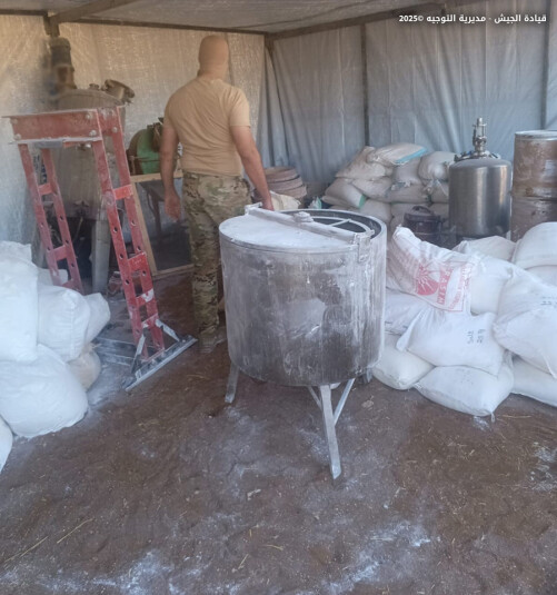 "ضمن إطار مكافحة الاتجار بالمخدرات في مختلف المناطق اللبنانية، وبعد عملية رصد ومتابعة لتحركات عصابات ترويج المخدرات في منطقة البقاع، نفذت دورية من مديرية المخابرات تؤازرها وحدة من الجيش عملية دهم منشأة في بلدة بوداي – بعلبك، وضبطت نحو 64 مليون حبة كبتاغون، و79 برميلًا من المواد الكيميائية المعدَّة لتصنيع المخدرات، بالإضافة إلى عدد من الآلات المستخدمة لتصنيعها، وهي من أهم العمليات التي ضُبطت بنتيجتها إحدى أكبر كميات المخدرات داخل الأراضي اللبنانية.