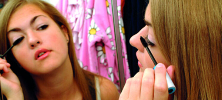 ونظراً لأن أضواء المناسبات الليلية المتلألئة تحجب التباينات، لذا يمكن للمرأة مساءً وضع طبقة أكثر سمكاً بعض الشيء من ظلال الجفون. ولهذا الغرض يتم رسم خطوط لتحديد معالم الحاجب، ثم مسح إطار الحواجب بالاتجاه إلى الداخل بوساطة فرشاة الحواجب.