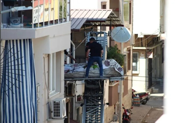 وقام فريق من العمال بفك نافذة الشقة لإخراج الجثمان الذي كان ملفوفاً بعناية وموضوعاً على لوح خشبي، ثم تم إنزاله بلطف إلى الأرض باستخدام الرافعة وسط مشاعر الحزن التي اجتاحت الحاضرين.