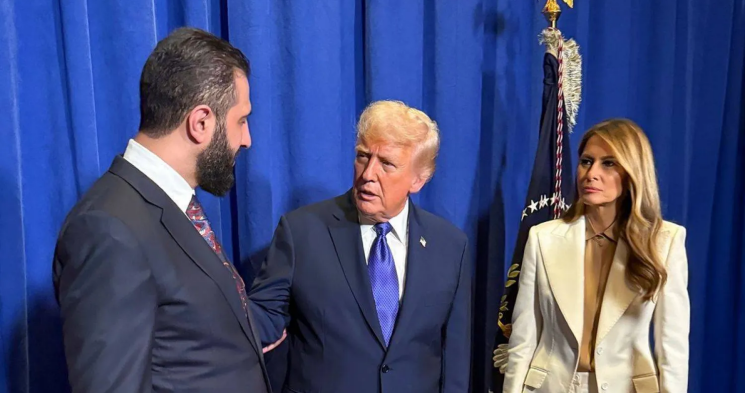 التقى رئيس الجمهورية العربية السورية أحمد الشرع، رئيس الولايات المتحدة الأميركية دونالد ترامب، وذلك خلال حفل الاستقبال الذي أقامه الرئيس الأميركي على هامش أعمال الدورة الثمانين للجمعية العامة للأمم المتحدة في نيويورك، في حضور عقيلته ميلانيا ترامب، بحسب "سانا".