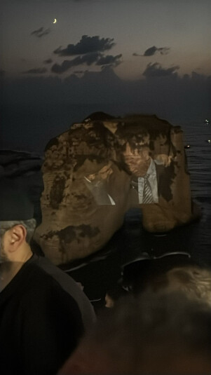 وأضيئت صخرة الروشة عبر الليزر بالعلم اللبناني، وبصورة السيدين، وبصورة نصرالله مع الرئيس الشهيد رفيق الحريري والرئيس سعد الحريري. كما أضيئت الصخرة بصورة نصرالله مع الرئيس نبيه بري.