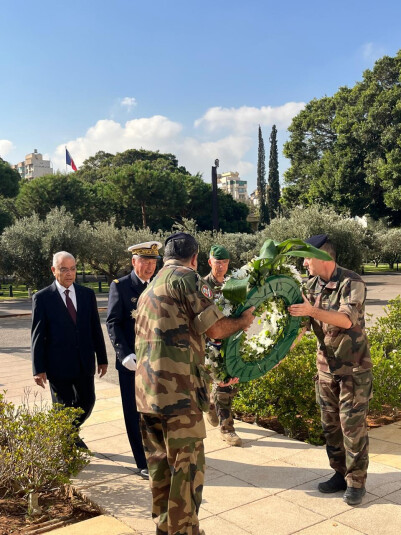 وكان الأميرال كولديفي وضع إكليلا من الزهر على النصب التذكاري لشهداء القوات الفرنسية في حرم قصر الصنوبر تكريما لذكراهم واكبارا لتضحياتهم . وأديت في المناسبة المراسم التكريمية .