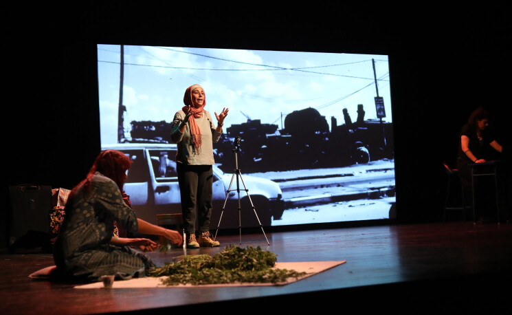 ونقلت الممثلات شهادات حيّة من تجارب النساء خلال الحرب، الأولى في غزة، حيث واجهت نور الاحتلال وتهديداته بالقصف وأصوات المسيّرات والرصاص، وصولاً إلى تهديدها بالاغتصاب لحماية طفلة كانت تحملها، وتمسّكت بها كأنّهما «شخص واحد». أمّا نهلة، فرُوِيَت قصة صمودها بوجه قصف منزلها وتدمير بلدتها لمنع المهجّرين من العودة إلى أرضهم والتعلّق بقصص منازلهم والأغراض التي يحبّونها، وكأنّ يومياتهم تمحى أمام أعينهم. وتتشابه قصة نور ونهلة في دهشتهما من أنّ بشراً قد يصلون إلى هذه الدرجة من اللاإنسانية وتجريد مَن في وجههم من حقوقهم بالحياة والأمان والغذاء.