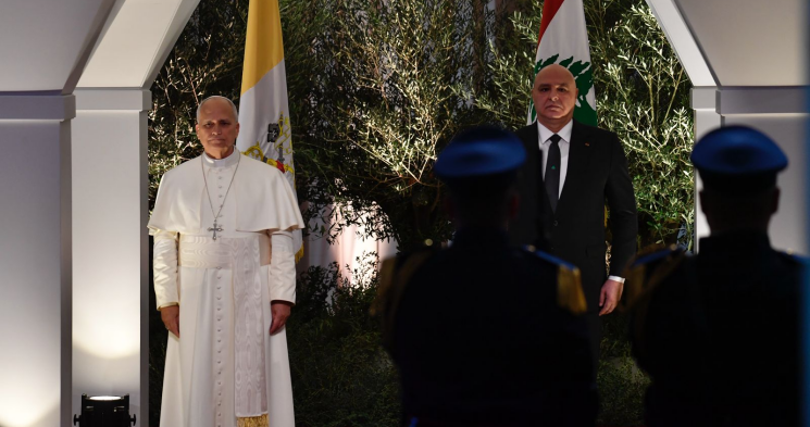 التقى بابا الفاتيكان لاوون الرابع عشر ، مع رئيس الجمهورية العماد جوزاف عون والسيدة الأولى نعمت عون ،ورئيس مجلس النواب نبيه بري وعقيلته السيدة رندة بري ورئيس مجلس الوزراء نواف سلام وعقيلته في قاعة الشرف في المطار.
