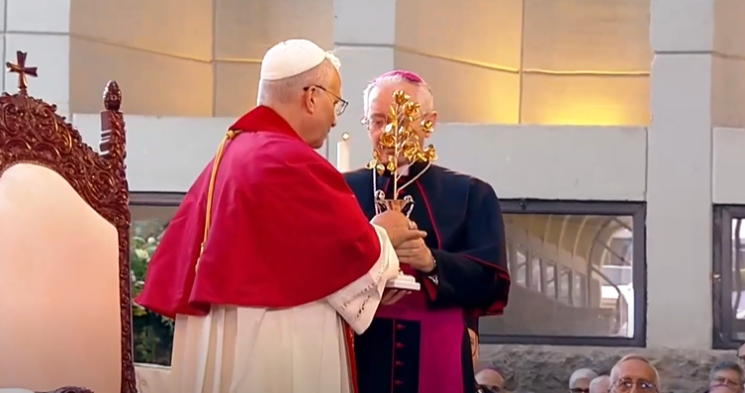 في نهاية لقاء البابا لاوون الرابع عشر مع البطاركة والأساقفة والمكرسين، قدّم وردة ذهبية للعذراء وقال: "إنها تحمل رائحة المسيح وهي بألف عطر".