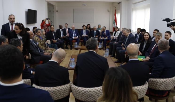 استقبل وزير الخارجية والمغتربين يوسف رجّي وفدا من سفراء الدول الخمس عشرة الأعضاء في مجلس الأمن الدولي، الذي يزور لبنان للاطلاع على الوضع عن كثب والبحث في مرحلة ما بعد قوات اليونيفيل.