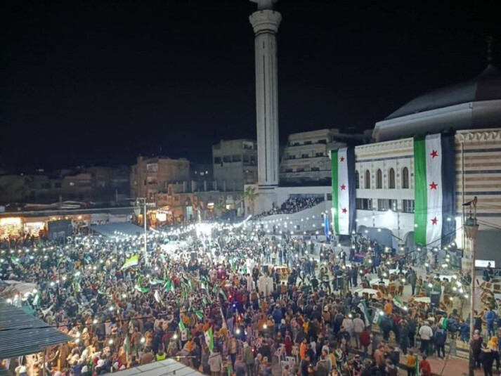 وتشهد بعض مناطق سوريا احتفالات منذ عدة أيام، اذ امتلأت شوارع حماة بالآلاف يوم الجمعة ملوحين بالعلم السوري الجديد احتفالا بذكرى اليوم الذي سيطر فيه مسلحون بقيادة جماعة هيئة تحرير الشام على المدينة خلال تقدمهم السريع باتجاه دمشق.
