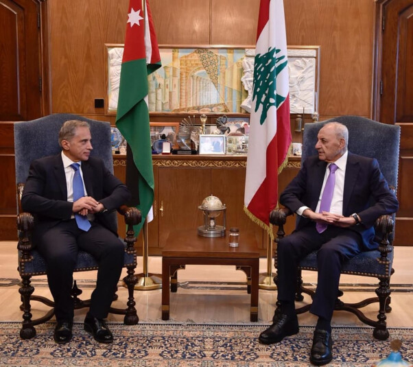 استقبل رئيس مجلس النواب نبيه بري في مقر الرئاسة الثانية في عين التينة رئيس الحكومة الاردنية جعفر حسان والوفد المرافق بحضور سفير المملكة الأردنية الهاشمية في لبنان وليد الحديد ووزير الأشغال العامة والنقل فايز رسامني حيث تناول اللقاء تطورات الاوضاع في لبنان والمنطقة والعلاقات الثنائية بين لبنان والمملكة الأردنية الهاشمية .