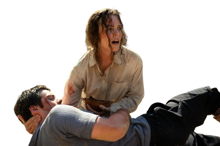«أظنني أحب هذا!» تعلن بسعادة، وقد تلطخت بأحشاء الخنزير التعس الذي حوّلته للتو إلى لحم مقدّد. ومثل شخصية أليسون لومان في فيلم رايمي Drag Me to Hell (2009) تمثل ليندا تحذيراً مفاده أنّ الفتيات اللطيفات، مهما كنّ كفؤات، يحتجن إلى التصلّب وتولّي زمام الأمور. وماكآدامز تفعل ذلك تماماً، منقضّة على الدور بشهية لَعق الشفاه. إنّها متقنة إلى حدّ يخاطر فيه أوبراين بأن يُظلَّل أداؤه؛ لكنّه يلعب الدور بحكمة على نحو خافت وماكر، ولا سيما خلال فترة هدنة لطيفة يتشارك فيها الاثنان قصصاً شخصية، ويبدو أنّ برادلي ينجذب إلى سمرة ليندا المتزايدة، خصلات شعرها الشاطئية، وملابسها التي تزداد ارتخاءً.