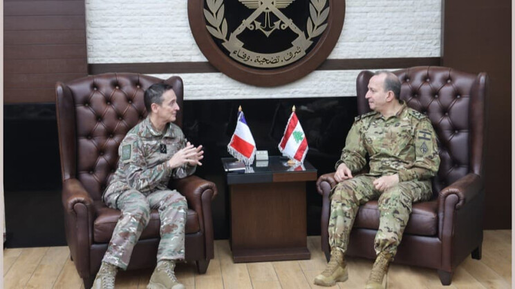 استقبل قائد الجيش العماد رودولف هيكل في مكتبه، في اليرزة، رئيس أركان الجيوش الفرنسية الجنرال فابيان ماندون، مع وفد مرافق، وتناول البحث آخر المستجدات في لبنان والمنطقة وسبل دعم الجيش وكيفية معالجة التطورات.