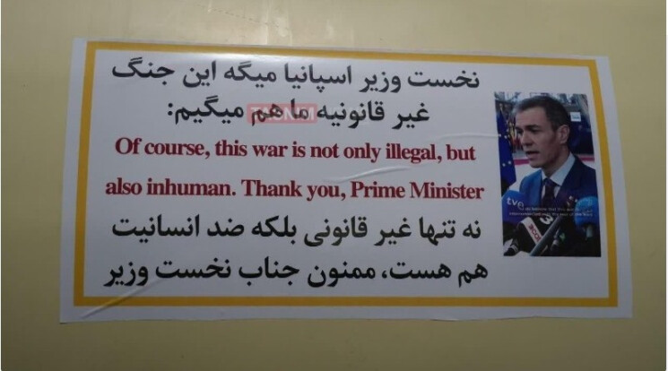 أفادت وكالة "تسنيم" الإيرانية، بأن إيران بدأت بوضع ملصق على صواريخها يحمل صورة لرئيس الوزراء الإسباني بيدرو سانشيز مصحوبة بتصريح له ينتقد فيه الحرب ضد إيران.