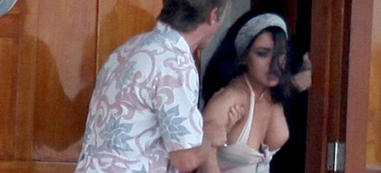 "بولر" يشدّ "ليندساي لوهان" بقوّة فيظهر صدرها!
