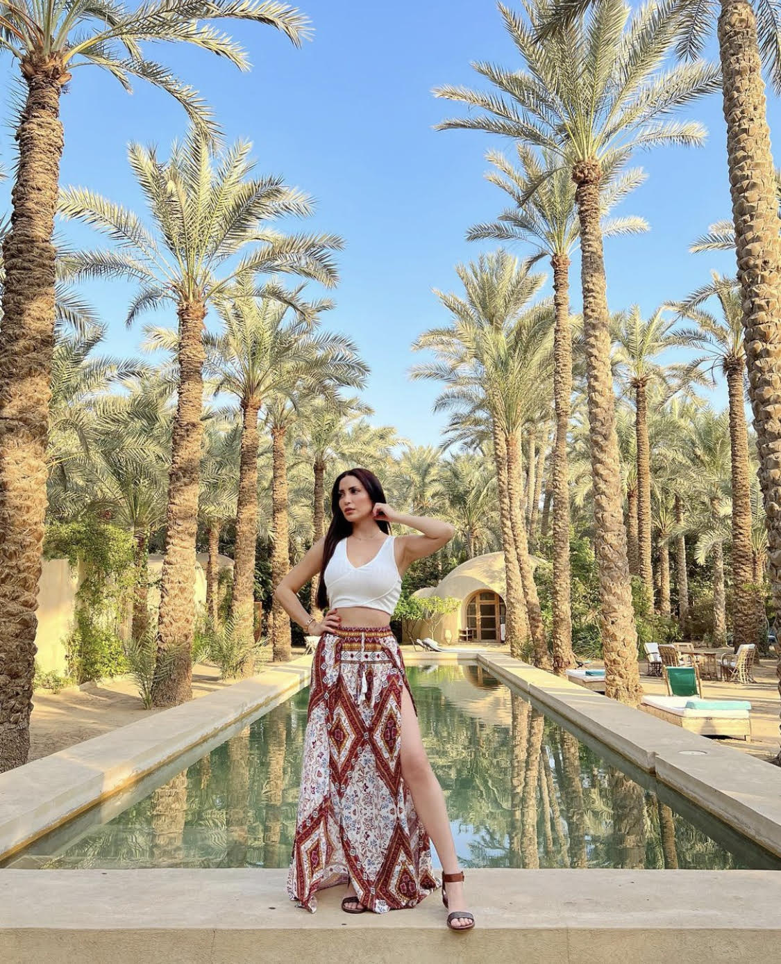 الممثلة السورية نسرين طافش تتألق من مسبح منزلها
