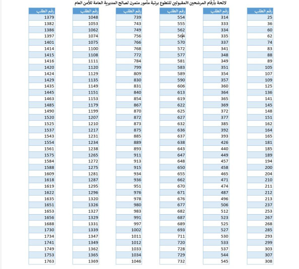 الأمن العام: صدور النتائج النهائية لمباراة التطوع برتبة مأمور متمرن