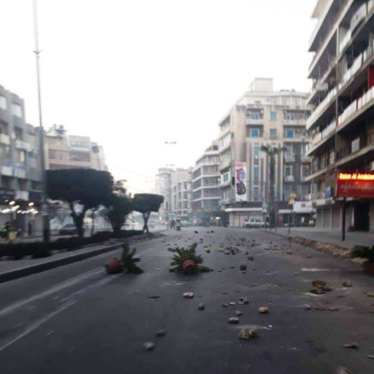 ولا تزال الطرق المؤدية إلى إشارات المئتين وعزمي وتقاطع الروكسي مقطوعة من كل الاتجاهات بالحجارة والحاويات.