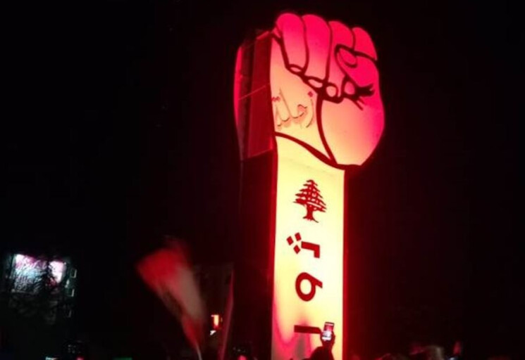 إضاءة مجسم "قبضة الثورة" في زحلة