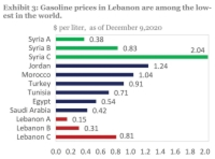 واعتبر انّ واردات السلع المدعومة لا توفّر دعماً فعالاً للفقراء، وهي في المقابل تَستنزِف احتياطيات مصرف لبنان، موضحاً، على سبيل المثال، انّ دعم المحروقات يفيد أصحاب الدخل المرتفع ويشجّع التهريب الى سوريا حيث تفوق أسعار البنزين ضعف السعر في لبنان (جدول 2). وبالتالي، رأى ايراديان، الذي عمل لدى صندوق النقد الدولي لمدة 17 عاماً، انّ رفع الدعم بشكل كامل او تدريجاً، مَصحوباً بتوفير شبكة أمان اجتماعي مصمّمة بشكل جيد (تؤمّن التحويلات النقدية مباشرة للفقراء) يمكن أن يُسفر عنه تحسّن كبير في رفاهية أصحاب الدخل المنخفض. وفي المقابل، حذّر من انّ رفع الدعم في الفترة المقبلة سيؤدّي إلى ارتفاع الأسعار ويؤثر سلباً على الدخل الحقيقي.